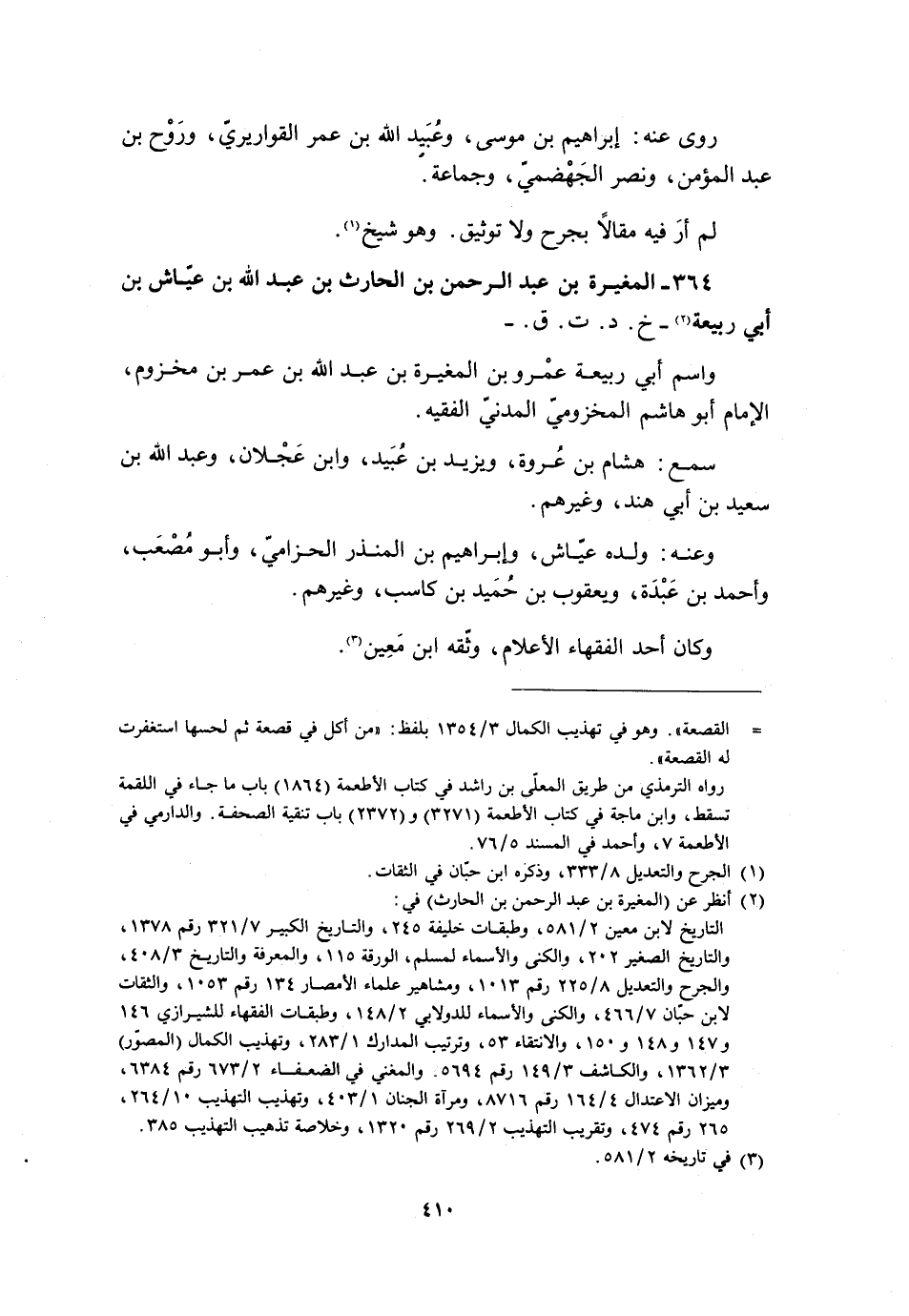 364- الْمُغِيرَةِ بْنِ عَبْدِ الرَّحْمَنِ بْنِ الْحَارِثِ بْنِ عبد الله بن عيّاش بن أبي ربيعة [2]- خ. د. ت. ق. - واسم أَبِي رَبِيعَةَ عَمْرُو بْن المُغِيرة بْن عَبْد اللَّه بْن عُمَر بْن مخزوم، الإمام أبو هاشم المخزوميّ المدنيّ الفقيه.