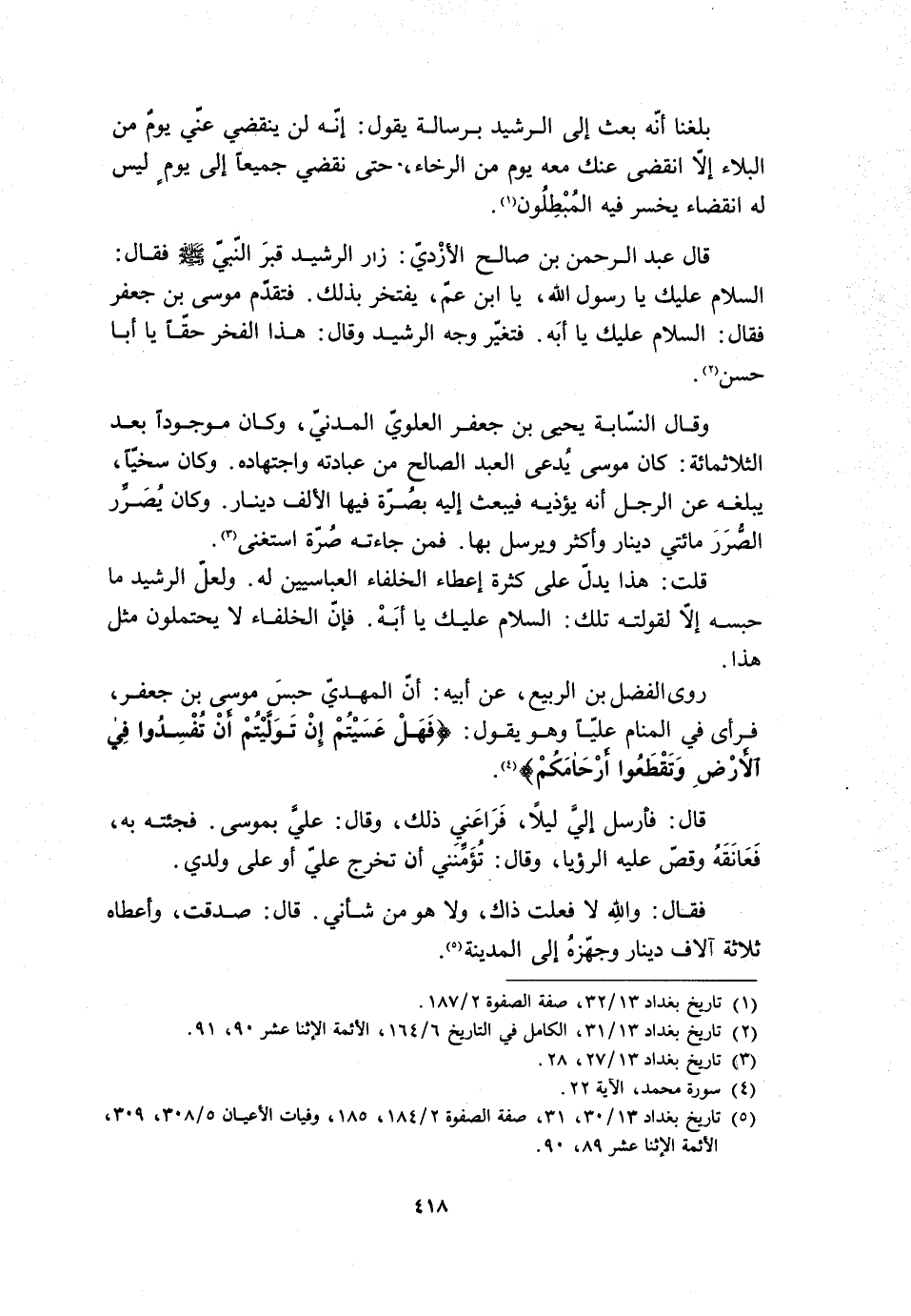 [2] تاريخ بغداد 13/ 31، الكامل في التاريخ 6/ 164، الأئمة الاثنا عشر 90، 91.