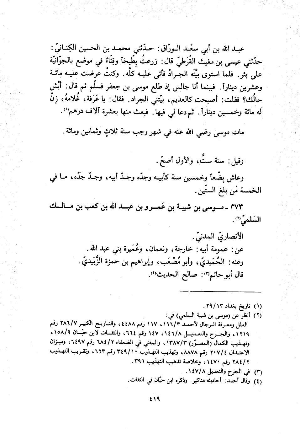 373- موسى بن شَيْبَة بن عَمْرو بْنُ عَبْدِ اللَّهِ بْنِ كَعْبِ بْنِ مَالِكٍ السُّلميّ [2] .