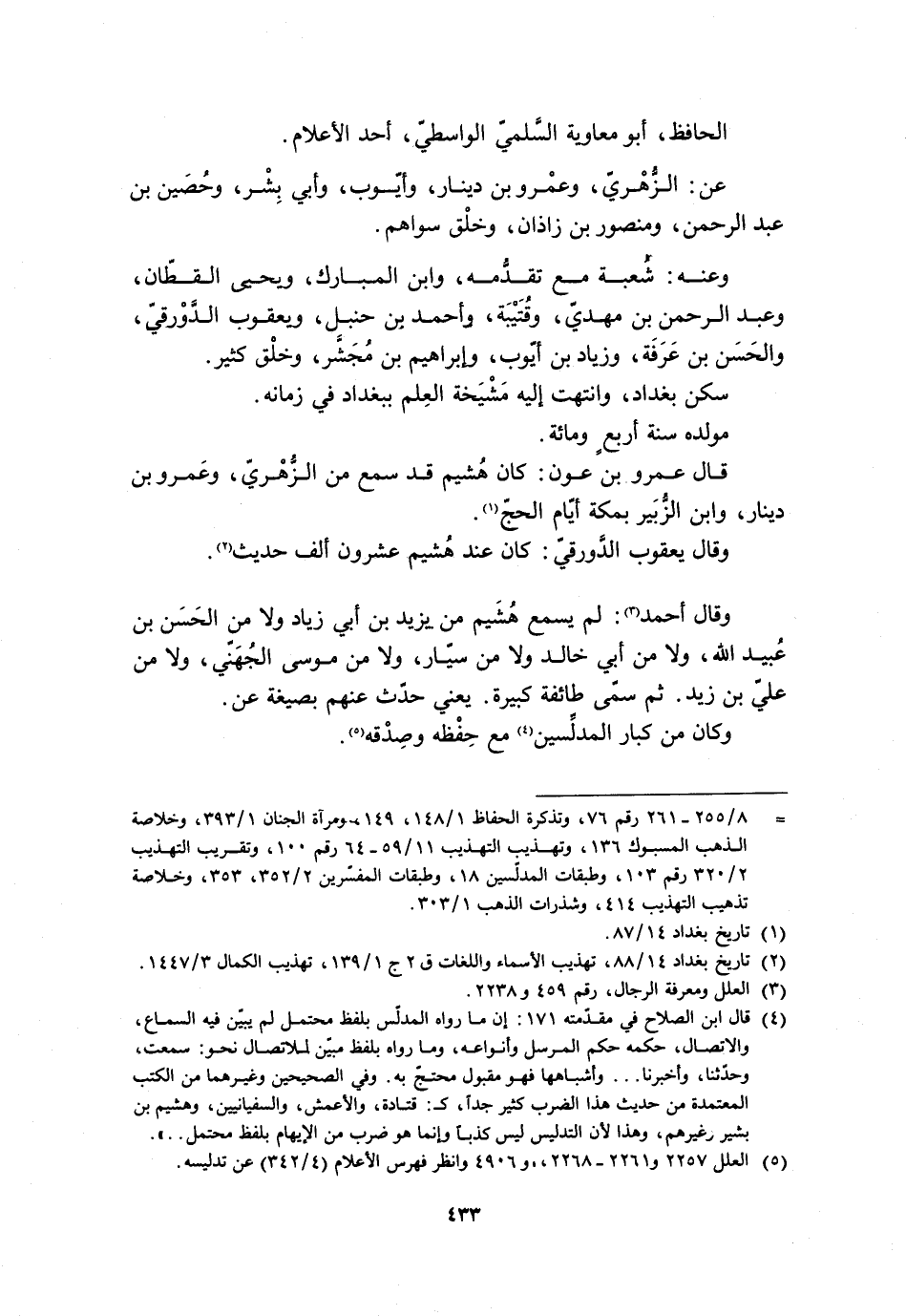 [2] تاريخ بغداد 14/ 88، تهذيب الأسماء واللغات ق 2 ج 1/ 139، تهذيب الكمال 3/ 1447.