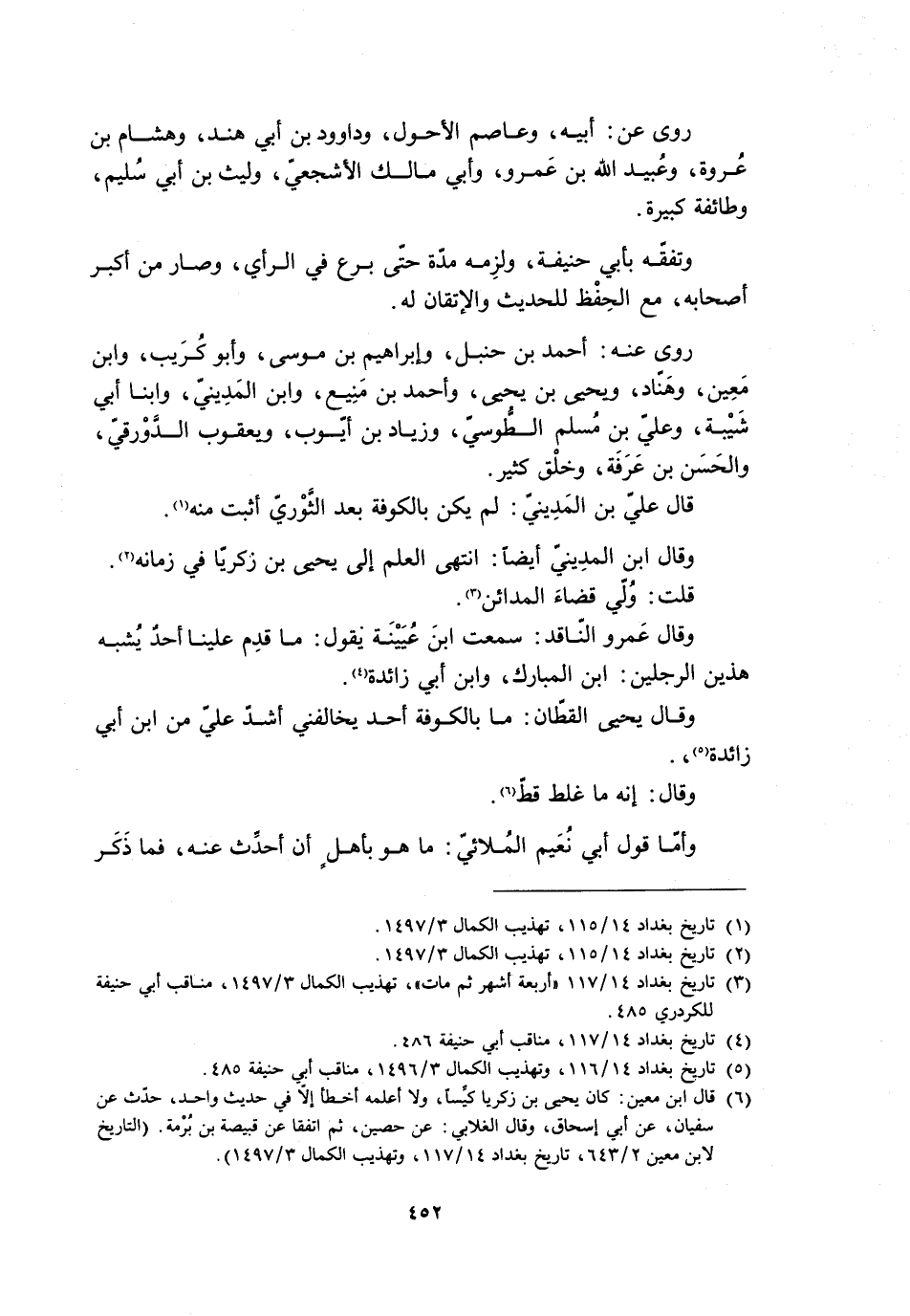 [5] تاريخ بغداد 14/ 116، وتهذيب الكمال 3/ 1496، مناقب أبي حنيفة 485.