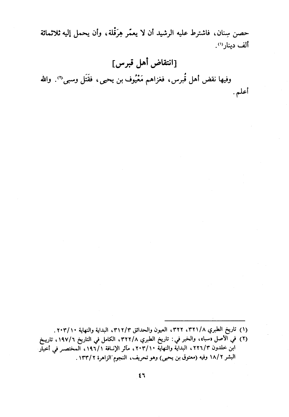 وَفِيهَا نَقَضَ أَهْلُ قُبْرُسَ، فَغَزَاهُمْ مَعْيُوفُ بْنُ يَحْيَى، فَقَتَلَ وَسَبَى [2] . والله أعلم.