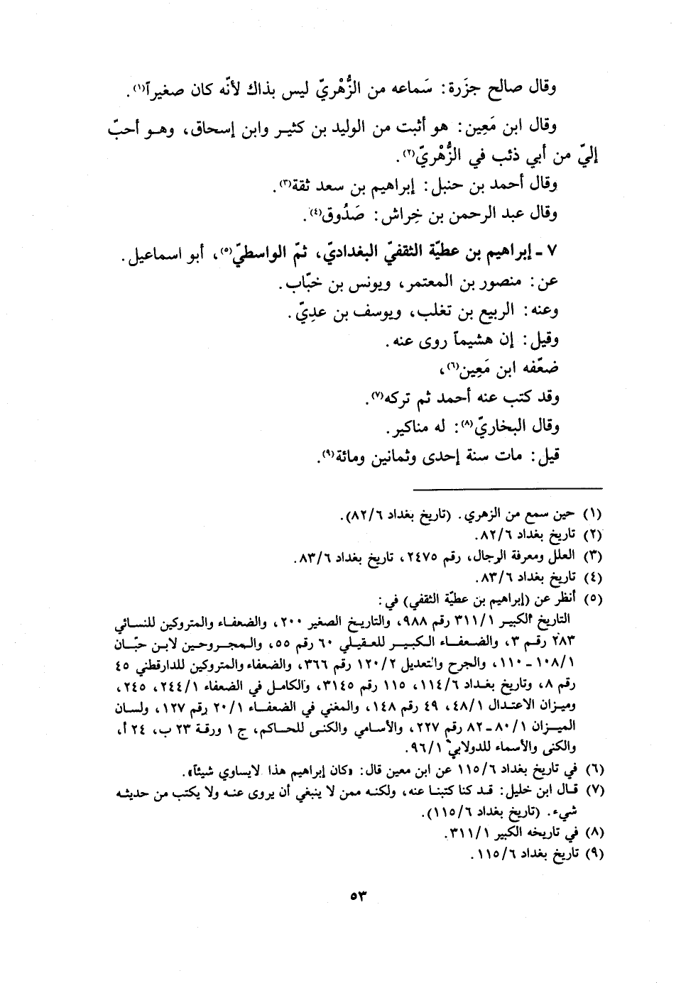 [6] في تاريخ بغداد 6/ 115 عن ابن معين قال: «كان إبراهيم هذا لا يساوي شيئا» .