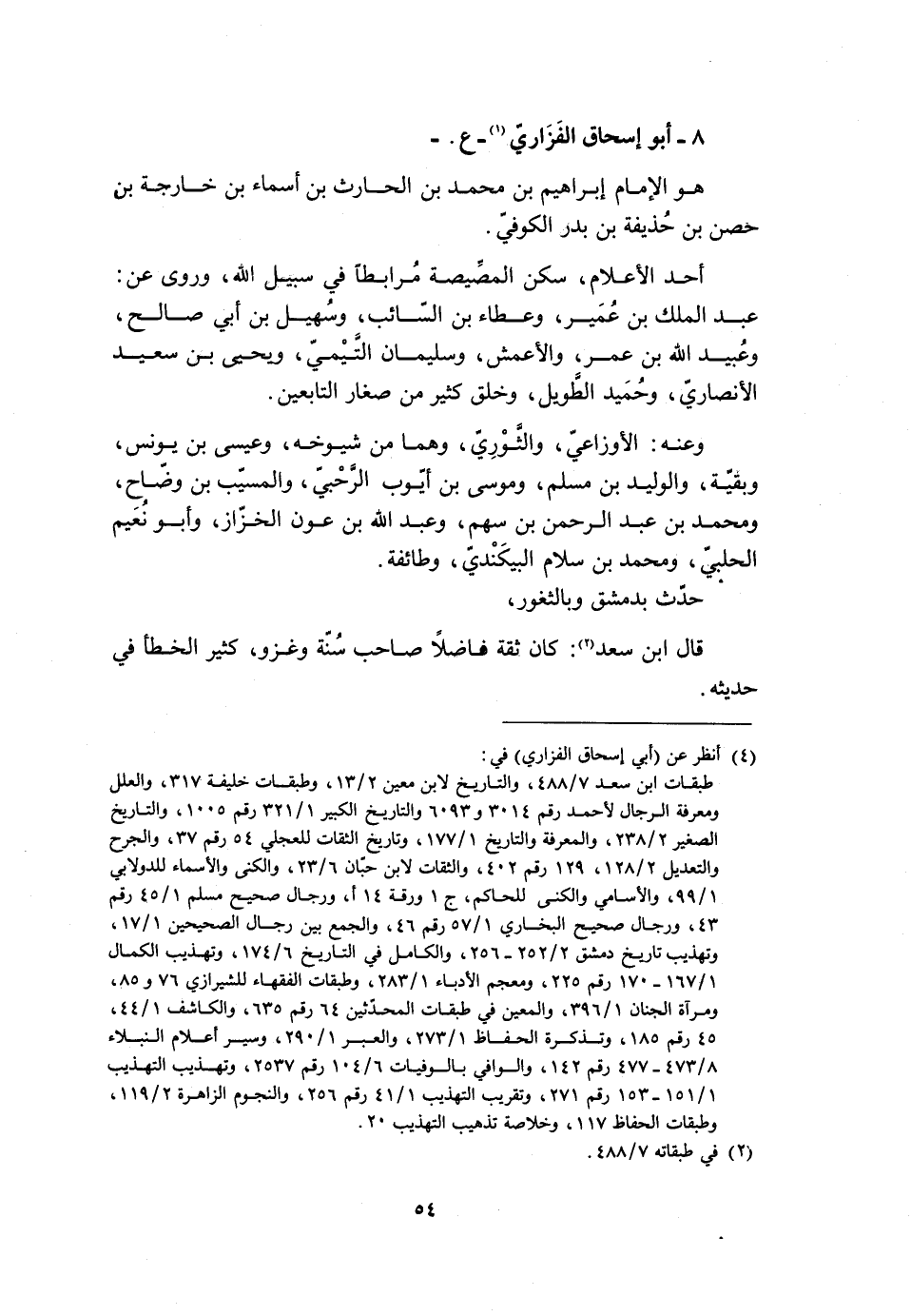 8- أَبُو إِسْحَاقَ الْفَزَارِيُّ [1]- ع- هُوَ الإِمَامُ إِبْرَاهِيمُ بْنُ مُحَمَّدِ بْنِ الْحَارِثِ بْنِ أَسْمَاءُ بْنُ خَارِجَةَ بْنِ حِصْنِ بْنِ حُذَيْفَةَ بْنِ بَدْرٍ الْكُوفِيُّ.