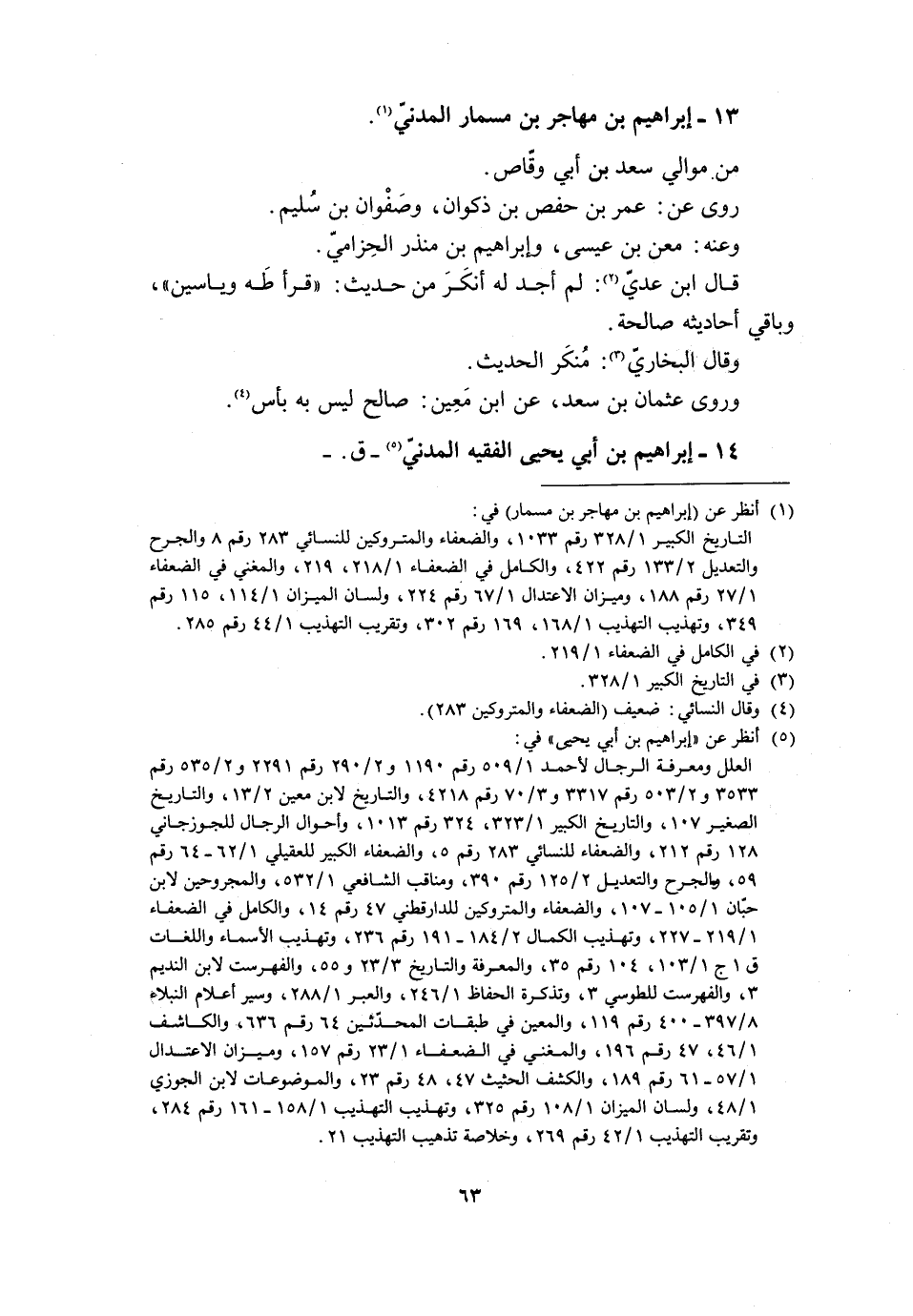 13- إِبْرَاهِيمُ بْنُ مُهَاجِرِ بْنِ مِسْمَارٍ الْمَدَنِيُّ [1] .
