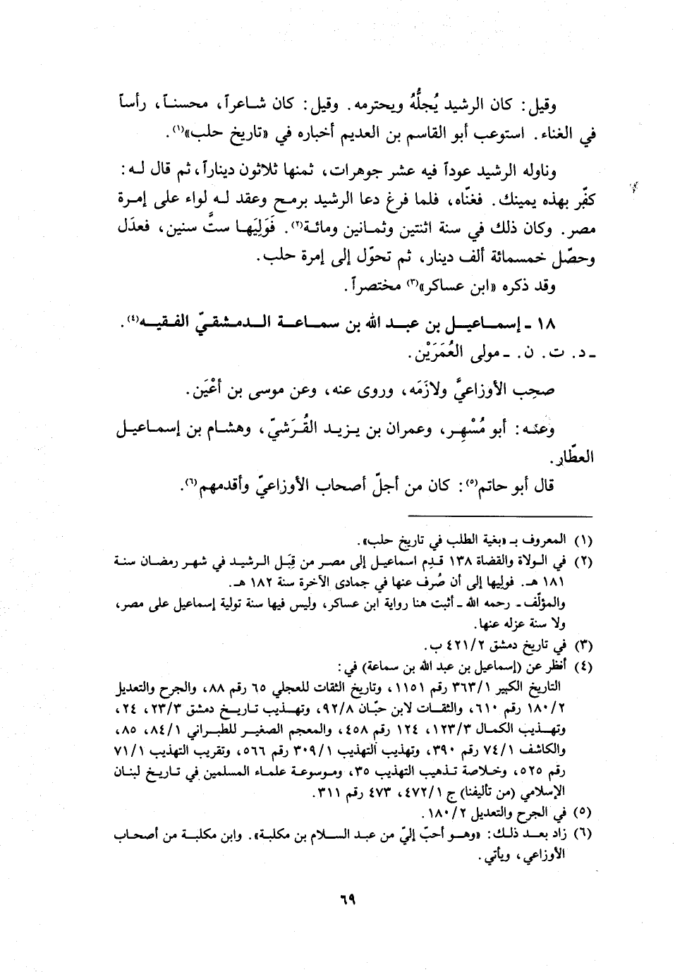 18- إِسْمَاعِيلُ بْنُ عَبْدِ اللَّهِ بْنِ سَمَاعَةَ الدِّمَشْقِيُّ الْفَقِيهُ [4] .