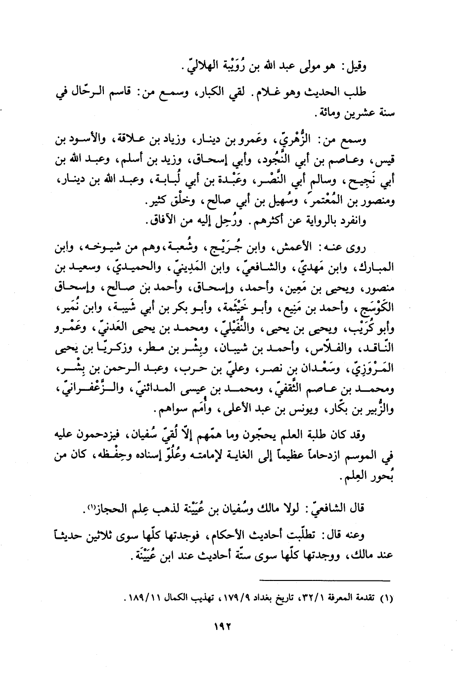 [1] تقدمة المعرفة 1/ 32، تاريخ بغداد 9/ 179، تهذيب الكمال 11/ 189.