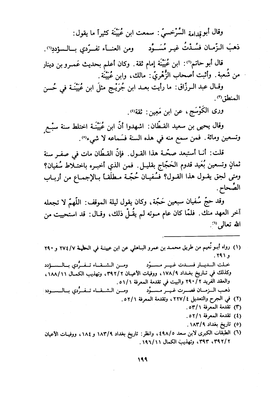 [6] الطبقات الكبرى لابن سعد 5/ 498، وانظر: تاريخ بغداد 9/ 183 و 184، ووفيات الأعيان 2/ 392، 393، وتهذيب الكمال 11/ 196.