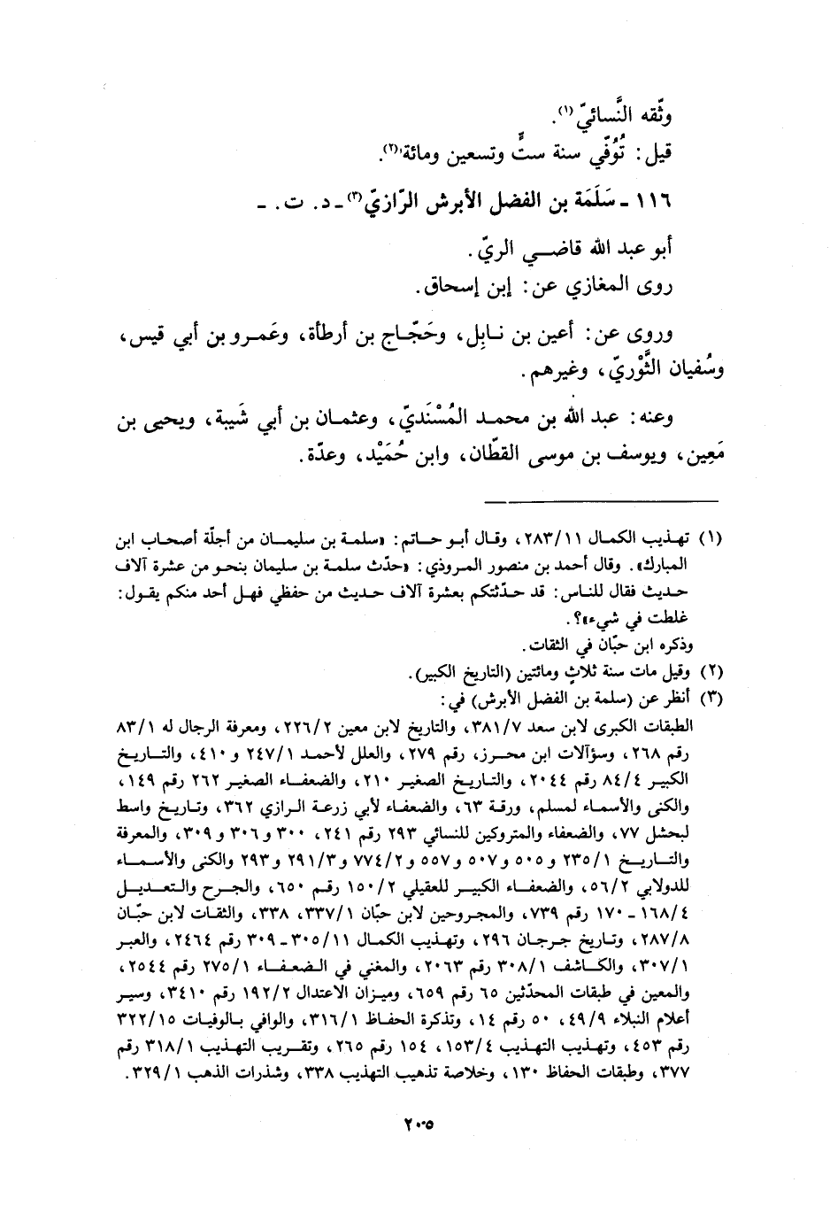 116- سلمة بن الفضل الأبرش الرّازيّ [3]- د. ت. - أبو عبد الله قاضي الريّ.