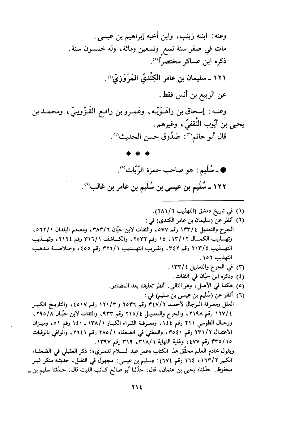 سُلَيْم: هُوَ صاحب حمزة الزّيّات. [5] 122- سُلَيْم بْن عيسى بْن سُلَيْم بن عامر بن غالب [6] .