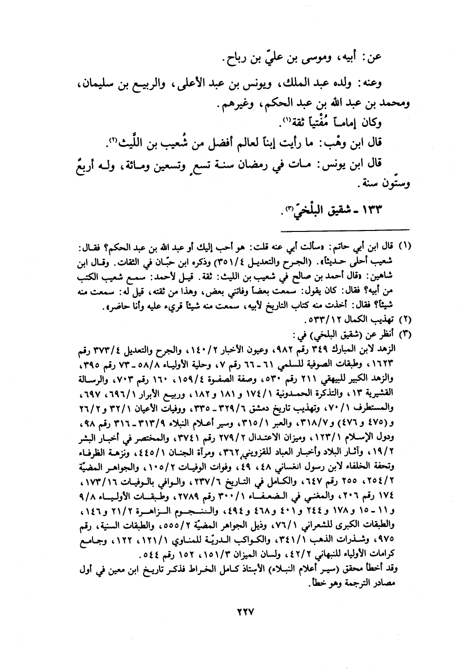 الزهد لابن المبارك 349 رقم 982، وعيون الأخبار 2/ 140، والجرح والتعديل 4/ 373 رقم 1623، وطبقات الصوفية للسلمي 61- 66 رقم 7، وحلية الأولياء 8/ 58- 73 رقم 395، والزهد الكبير للبيهقي 211 رقم 530، وصفة الصفوة 4/ 159، 160 رقم 703، والرسالة القشيرية 13، والتذكرة الحمدونية 1/ 174 و 181 و 182، وربيع الأبرار 1/ 696، 697، والمستطرف 1/ 70، وتهذيب تاريخ دمشق 6/ 329- 335، ووفيات الأعيان 1/ 32 و 2/ 26 و (475 و 476) و 7/ 318، والعبر 1/ 315، وسير أعلام النبلاء 9/ 313- 316 رقم 98، ودول الإسلام 1/ 123، وميزان الاعتدال 2/ 279 رقم 3741، والمختصر في أخبار البشر 2/ 19، وآثار البلاد وأخبار العباد للقزويني 362، ومرآة الجنان 1/ 445، ونزهة الظرفاء وتحفة الخلفاء لابن رسول الغساني 48، 49، وفوات الوفيات 2/ 105، والجواهر المضيّة 2/ 254، 255 رقم 647، والكامل في التاريخ 6/ 237، والوافي بالوفيات 16/ 173، 174 رقم 206، والمغني في الضعفاء 1/ 300 رقم 2789، وطبقات الأولياء 8/ 9 و 11- 15 و 178 و 244 و 401 و 468 و 494، والنجوم الزاهرة 2/ 21 و 146، والطبقات الكبرى للشعراني 1/ 76، وذيل الجواهر المضيّة 2/ 555، والطبقات السنية، رقم 975، وشذرات الذهب 1/ 341، والكواكب الدريّة للمناوي 1/ 121، 122، وجامع كرامات الأولياء للنبهاني 2/ 42، ولسان الميزان 3/ 151، 152 رقم 544.