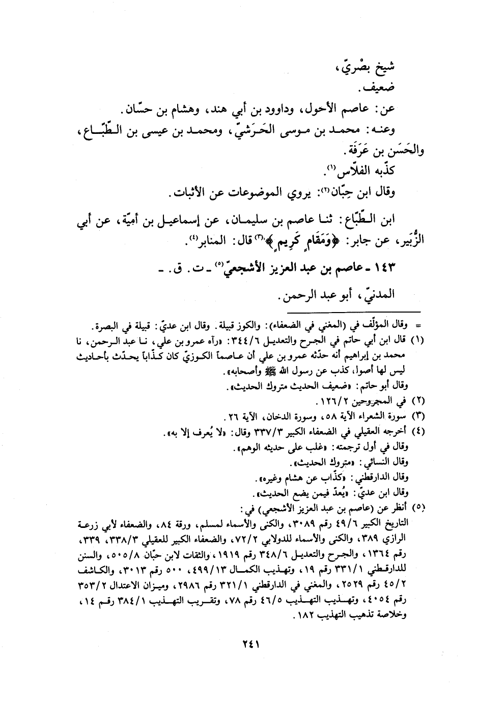 143- عاصم بْن عَبْد العزيز الأشجعيّ [5]- ت. ق. - المدنيّ، أبو عبد الرحمن.