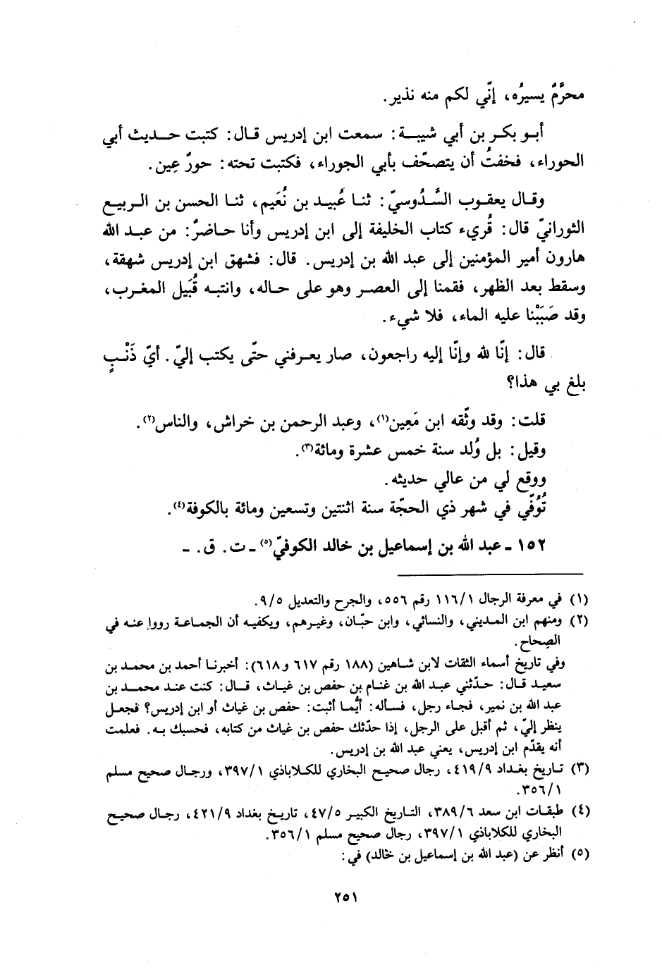 [4] طبقات ابن سعد 6/ 389، التاريخ الكبير 5/ 47، تاريخ بغداد 9/ 421، رجال صحيح البخاري للكلاباذي 1/ 397، رجال صحيح مسلم 1/ 356.