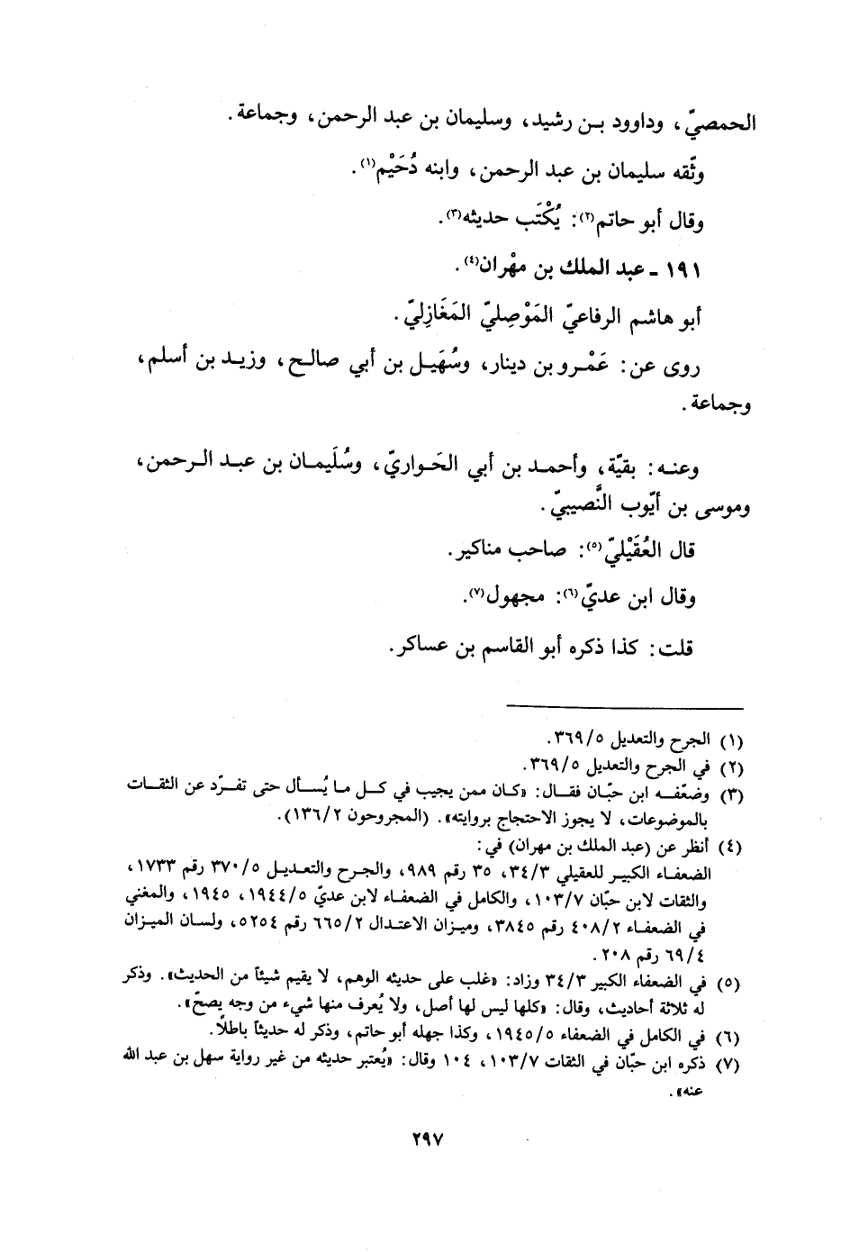 [6] في الكامل في الضعفاء 5/ 1945، وكذا جهله أبو حاتم، وذكر له حديثا باطلا.