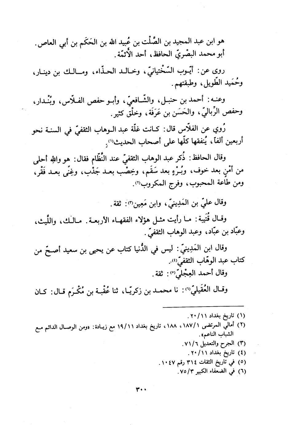 وقال ابن المَدِينيّ: لَيْسَ في الدُّنيا كتاب عَنْ يحيى بْن سَعِيد أصحّ مِن كتاب عَبْد الوهّاب الثَّقَفيّ [4] .