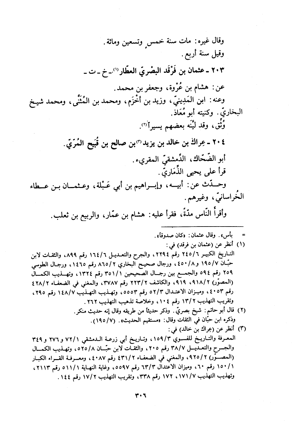 203- عثمان بن فرقد البصري العطار [1]- خ- ت- عَنْ: هِشَامِ بْنِ عُرْوَةَ، وَجَعْفَرِ بْنِ مُحَمَّدٍ.