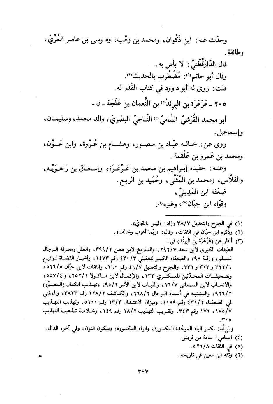 205- عَرْعَرَة بْن البِرِند [3] بْن النّعمان بن علجة- ن- أبو محمد القرشيّ، السّاميّ [4] النّاجيّ البصريّ، والد محمد، وسليمان، وإسماعيل.