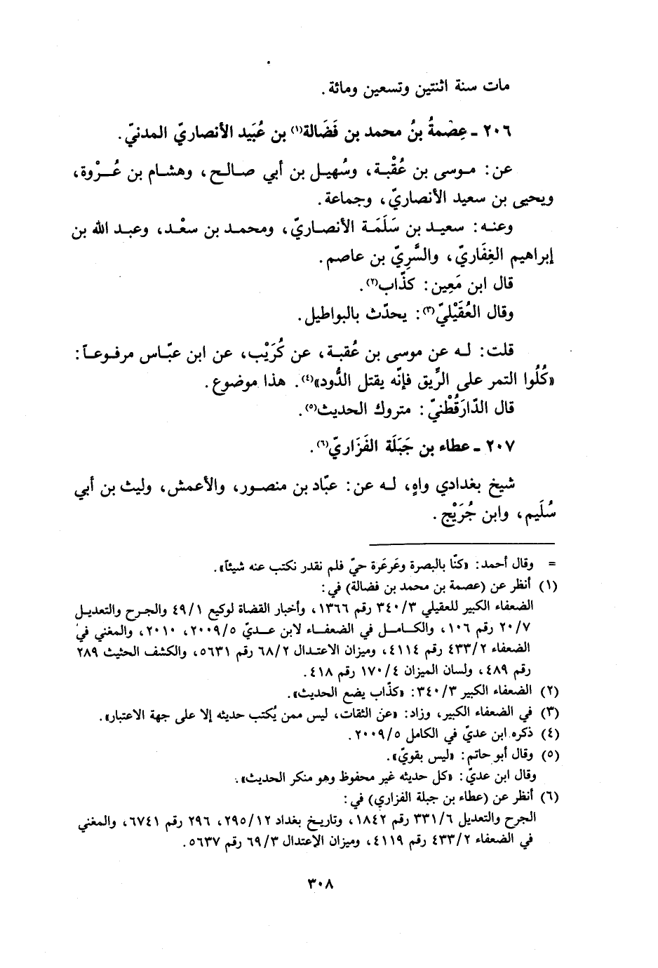 206- عِصمةُ بنُ محمد بْن فَضَالَةَ [1] بْن عُبَيْد الأنصاريّ المدنيّ.