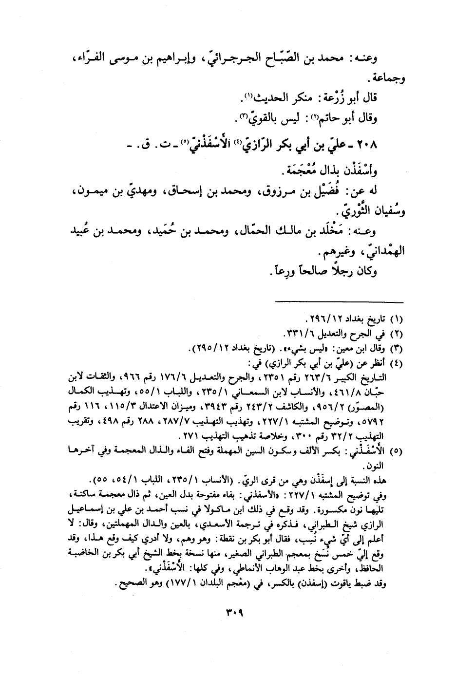 208- عليّ بْن أبي بكر الرازي [4] الأسفذني [5]- ت. ق. - وأسْفَذْن بذال مُعْجَمَةٍ.