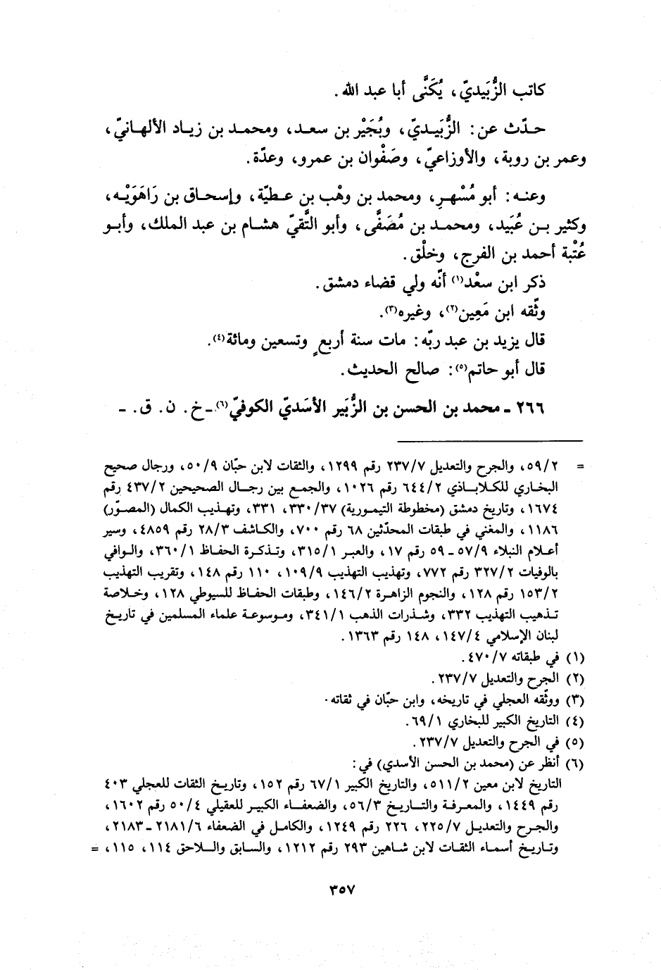 266- مُحَمَّدُ بْنُ الحسن بن الزّبير الأسديّ الكوفيّ [6]- خ. ن. ق. -