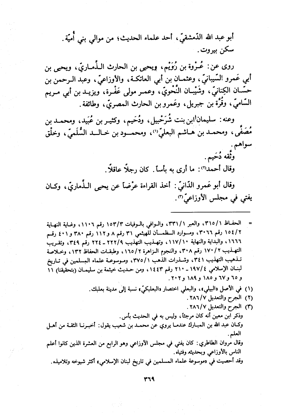 [ () ] الحفاظ 1/ 315، والعبر 1/ 331، والوافي بالوفيات 3/ 153 رقم 1106، وغاية النهاية 2/ 154 رقم 3066، وموارد الظمآن للهيثمي 31 رقم 8 و 112 رقم 380 و 401 رقم 1666، والبداية والنهاية 10/ 117، وتهذيب التهذيب 9/ 222- 224 رقم 349، وتقريب التهذيب 2/ 170 رقم 308، والنجوم الزاهرة 2/ 165، وطبقات الحفاظ 132، وخلاصة تذهيب التهذيب 341، وشذرات الذهب 1/ 375، وموسوعة علماء المسلمين في تاريخ لبنان الإسلامي 4/ 197- 210 رقم 1443، ومن حديث خيثمة بن سليمان (بتحقيقنا) 11 و 65 و 67 و 185 و 189 و 202.