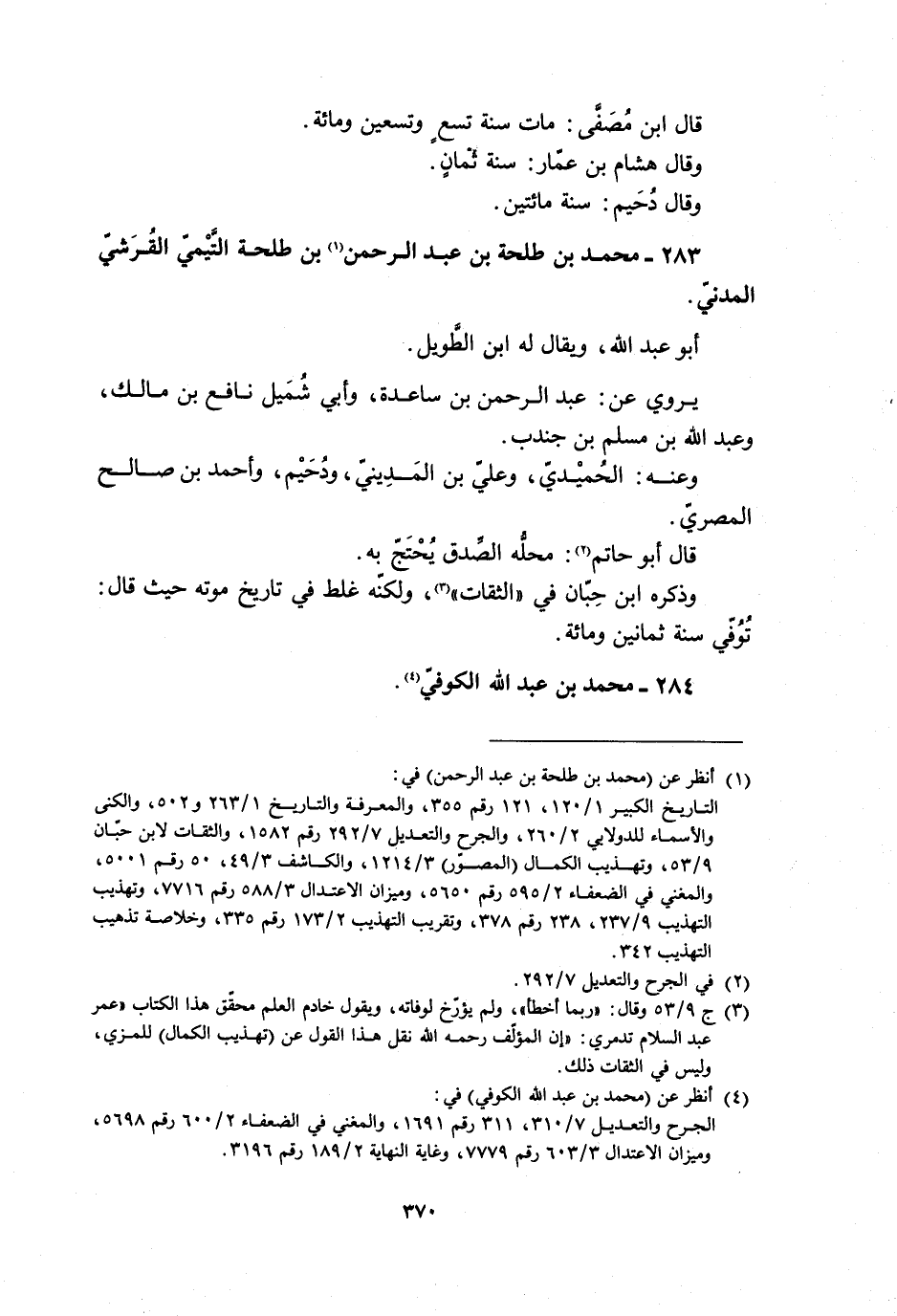 283- محمد بْن طلحة بْن عَبْد الرَّحْمَن [1] بْن طلحة التَّيْميّ الْقُرَشِيّ المدنيّ.