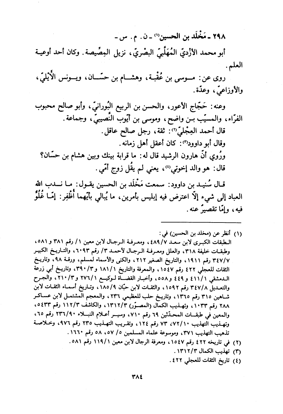 298- مخلد بن الحسين [1]- ن. م. س. - أبو محمد الأزديّ المهلّبيّ البصريّ، نزيل المصَّيصة. وكان أحد أوعية العِلْم.