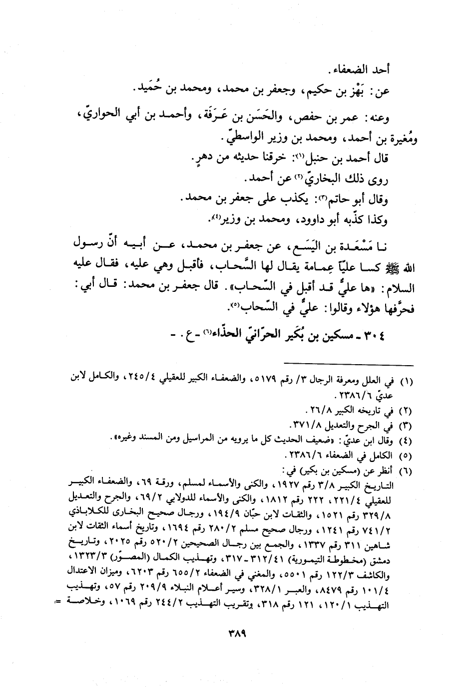 فَحَرَّفَهَا هَؤُلاءِ وَقَالُوا: عَلِيٌّ فِي السَّحَابِ [5] . 304- مسكين بن بكير الحرّانيّ الحذّاء [6]- ع. -