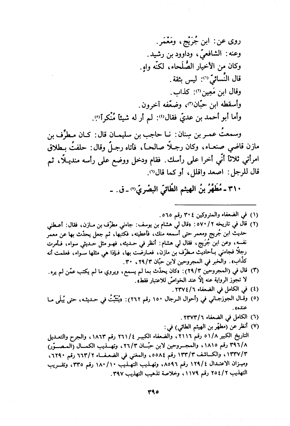 310- مُطَهَّرُ بنُ الهيثم الطّائيّ البصريّ [7]- ق. -