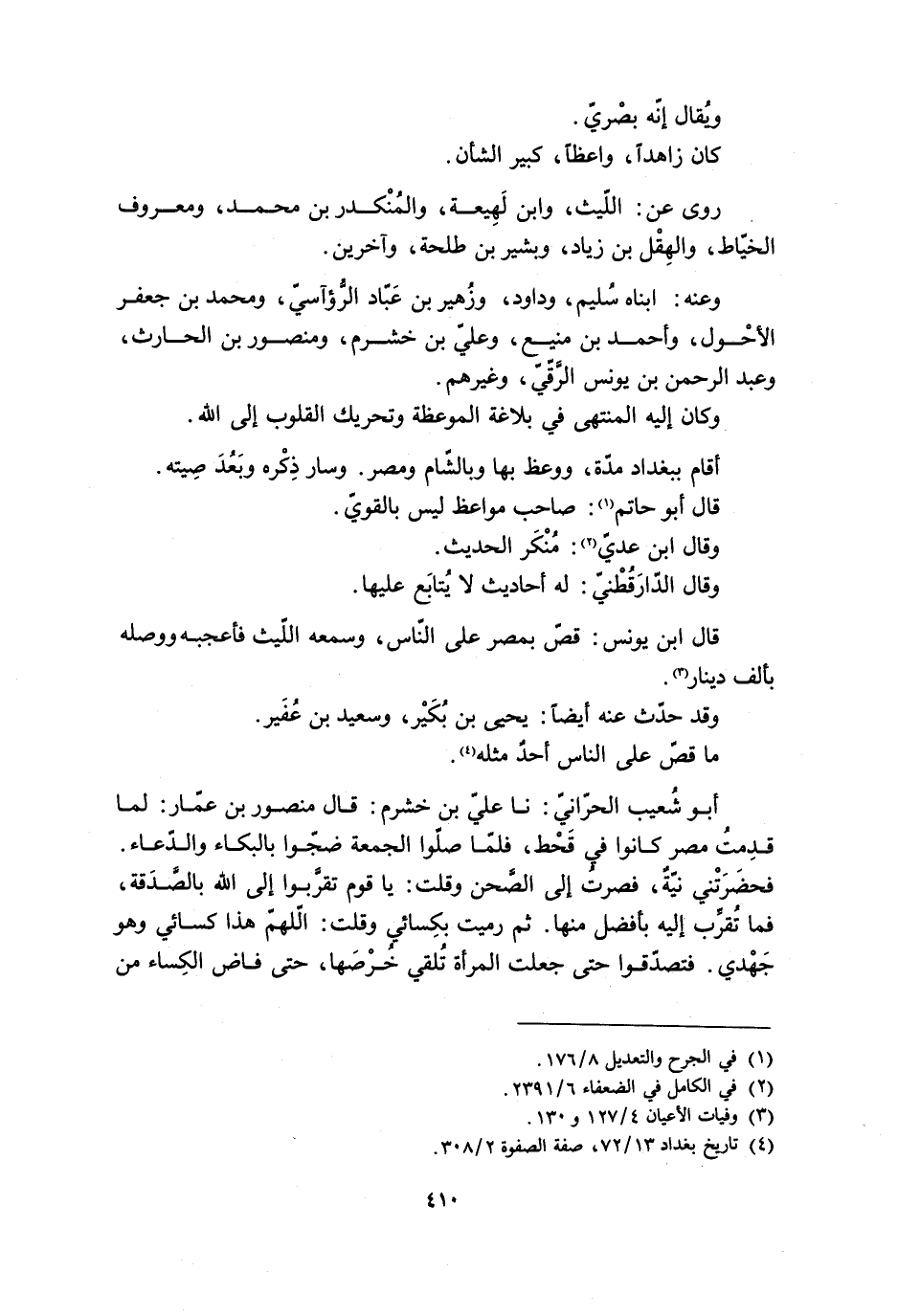 [4] تاريخ بغداد 13/ 72، صفة الصفوة 2/ 308.