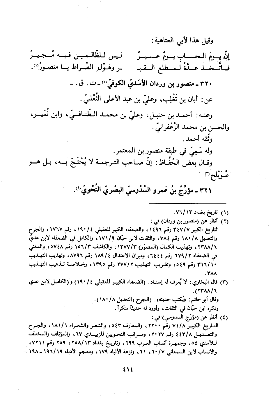 320- منصور بن وردان الأسَديّ الكوفيّ [2]- ت. ق. - عَنْ: أبان بْن تَغْلِب، وعليّ بْن عَبْد الأعلى الثَّعْلبيّ.