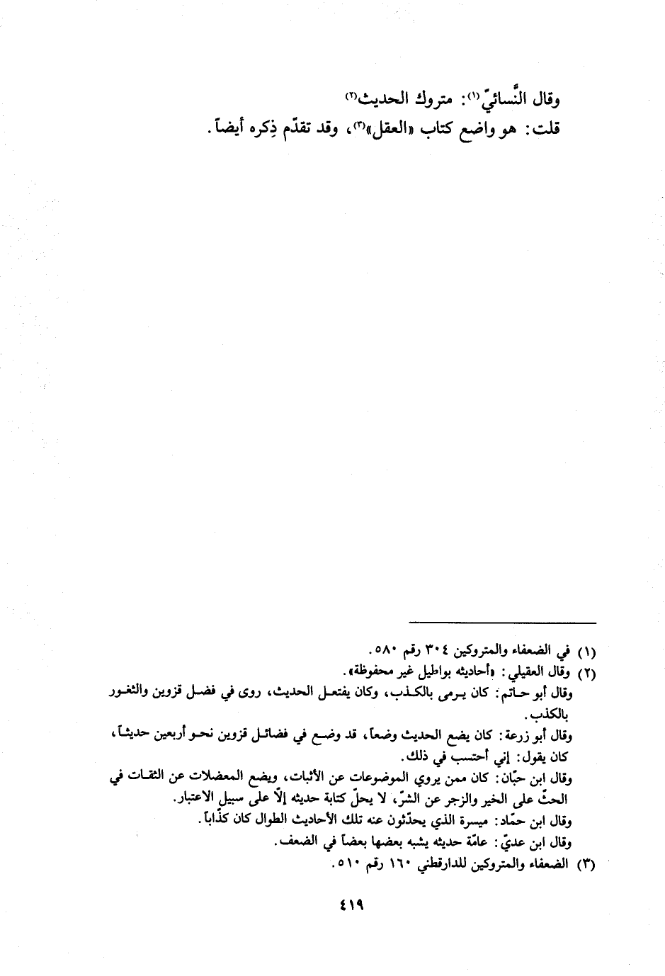 [1] في الضعفاء والمتروكين 304 رقم 580.