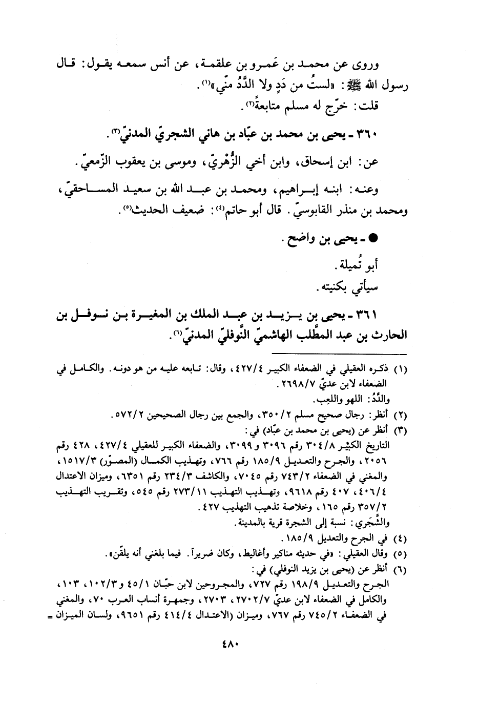 361- يحيى بْن يَزِيدُ بْنُ عَبْدُ الْمَلِكِ بْنُ الْمُغِيرَةِ بْنُ نَوْفَلِ بْنِ الحارث بْن عَبْد المطَّلب الهاشميّ النَّوفليّ المدنيّ [6] .