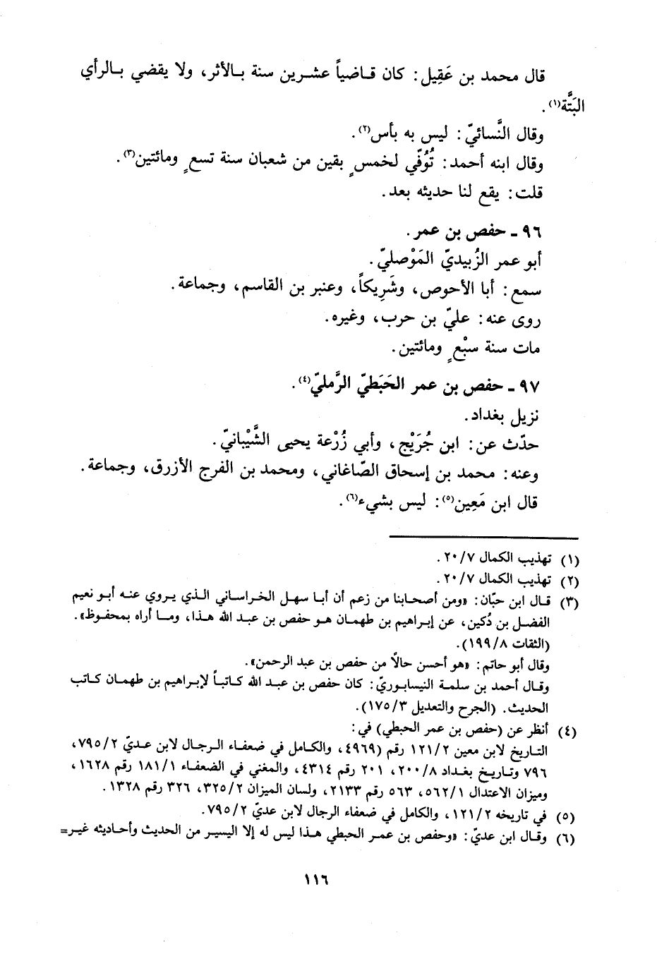 [4] انظر عن (حفص بن عمر الحبطي) في: