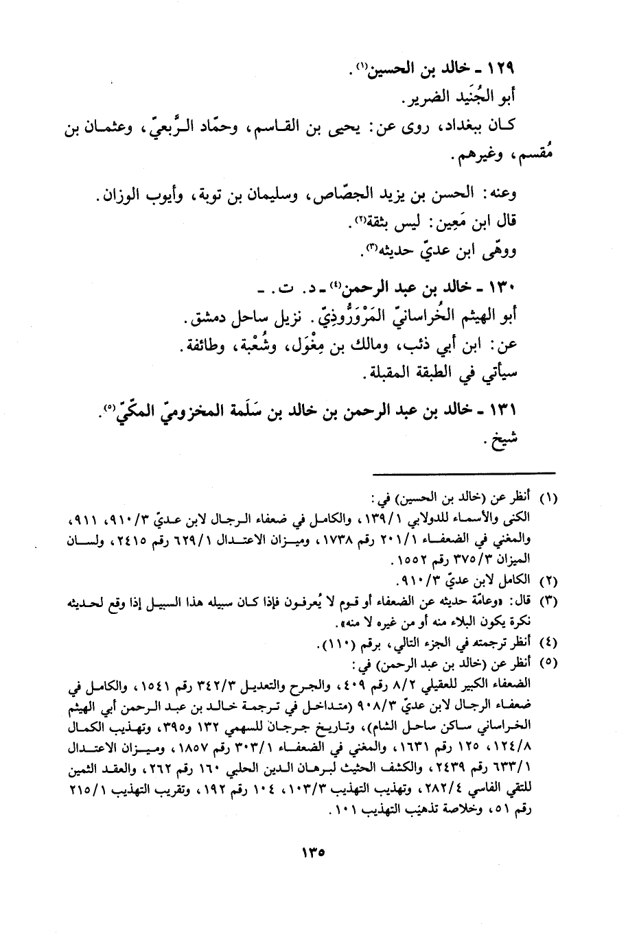 130- خالد بن عبد الرحمن [4]- د. ت. - أبو الهيثم الخراسانيّ المرورّوذيّ. نزيل ساحل دمشق.