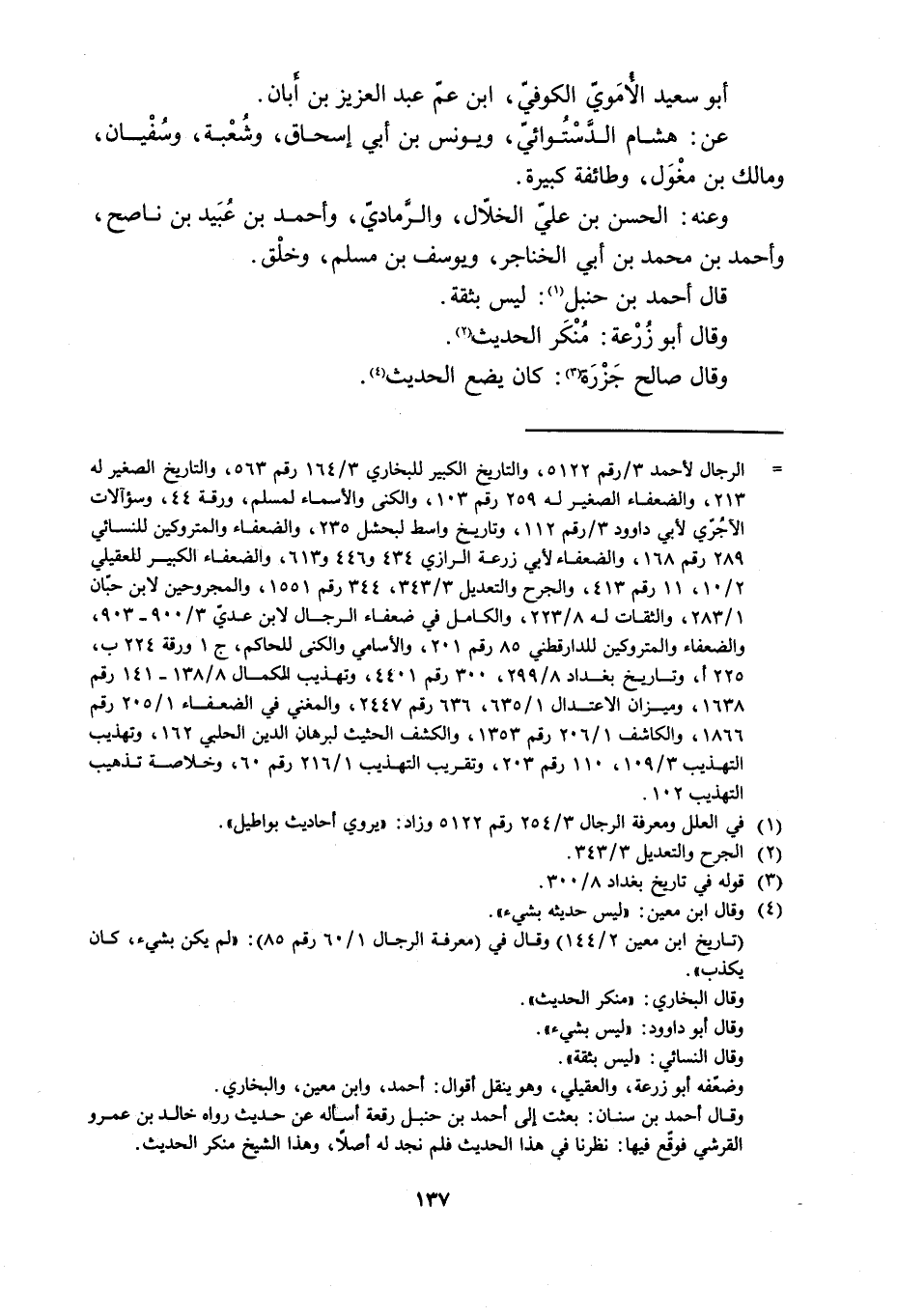 [1] في العلل ومعرفة الرجال 3/ 254 رقم 5122 وزاد: «يروي أحاديث بواطيل» .