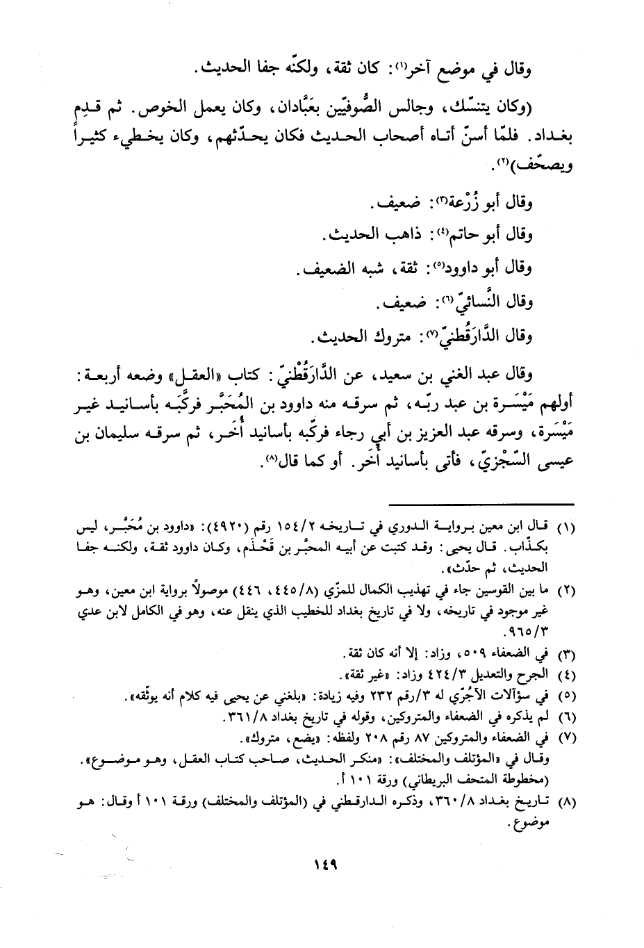 [6] لم يذكره في الضعفاء والمتروكين، وقوله في تاريخ بغداد 8/ 361.