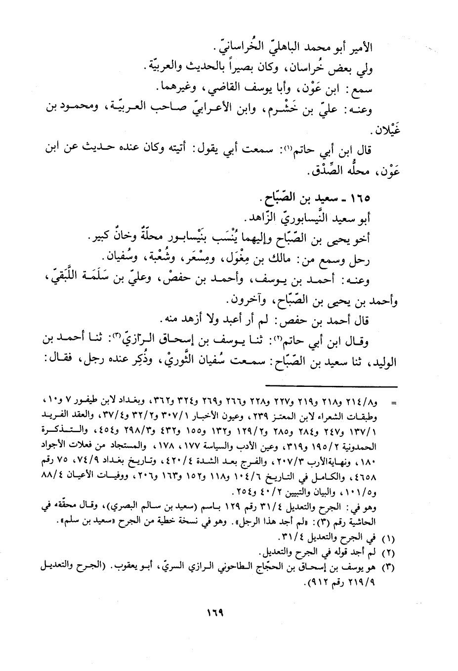 وقال ابن أَبِي حاتم [2] : ثنا يوسف بْن إِسْحَاق الرّازيّ [3] : ثنا أحمد بْن الوليد، ثنا سَعِيد بْن الصّبّاح: سَمِعْتُ سُفْيَان الثَّوْريّ، وذكر عنده رجل، فقال:
