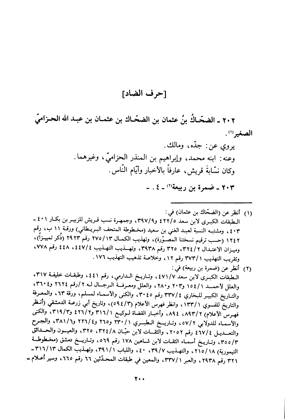 202- الضّحّاك بْن عثمان بْن الضّحّاك بْن عثمان بْن عَبْد اللَّه الحزاميّ الصغير [1] .