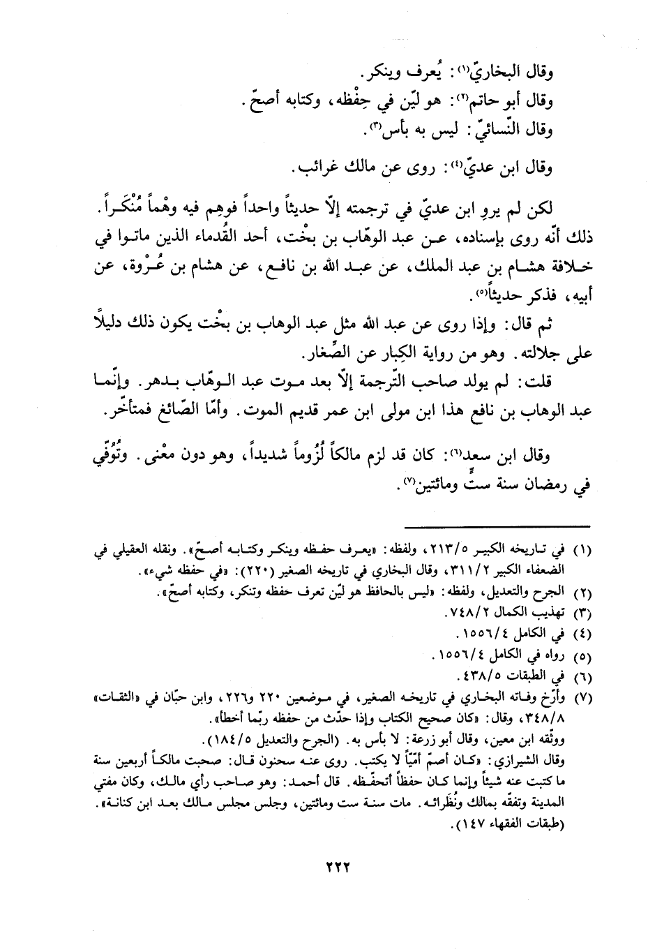 [7] وأرّخ وفاته البخاري في تاريخه الصغير، في موضعين 220 و 226، وابن حبّان في «الثقات» 8/ 348، وقال: «كان صَحِيحُ الْكِتَابِ وَإِذَا حَدَّثَ مِنْ حِفْظِهِ رُبَّمَا أخطأ» .