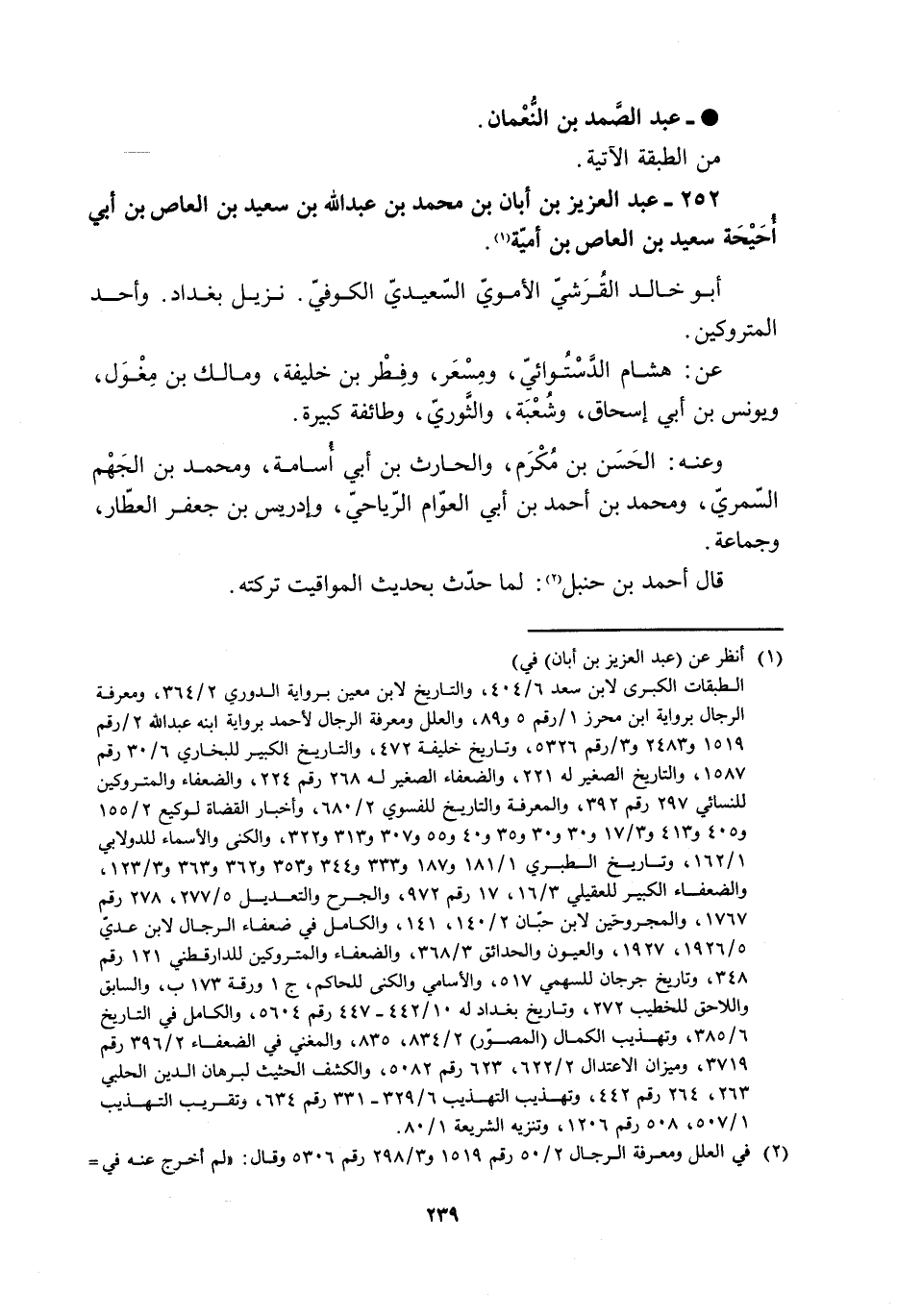 252- عَبْد العزيز بْن أبان بْن محمد بْن عَبْد اللَّه بْن سَعِيد بْن العاص بْن أَبِي أحيحة سَعِيدِ بْنِ الْعَاصِ بْنِ أُمَيَّةَ [1] .