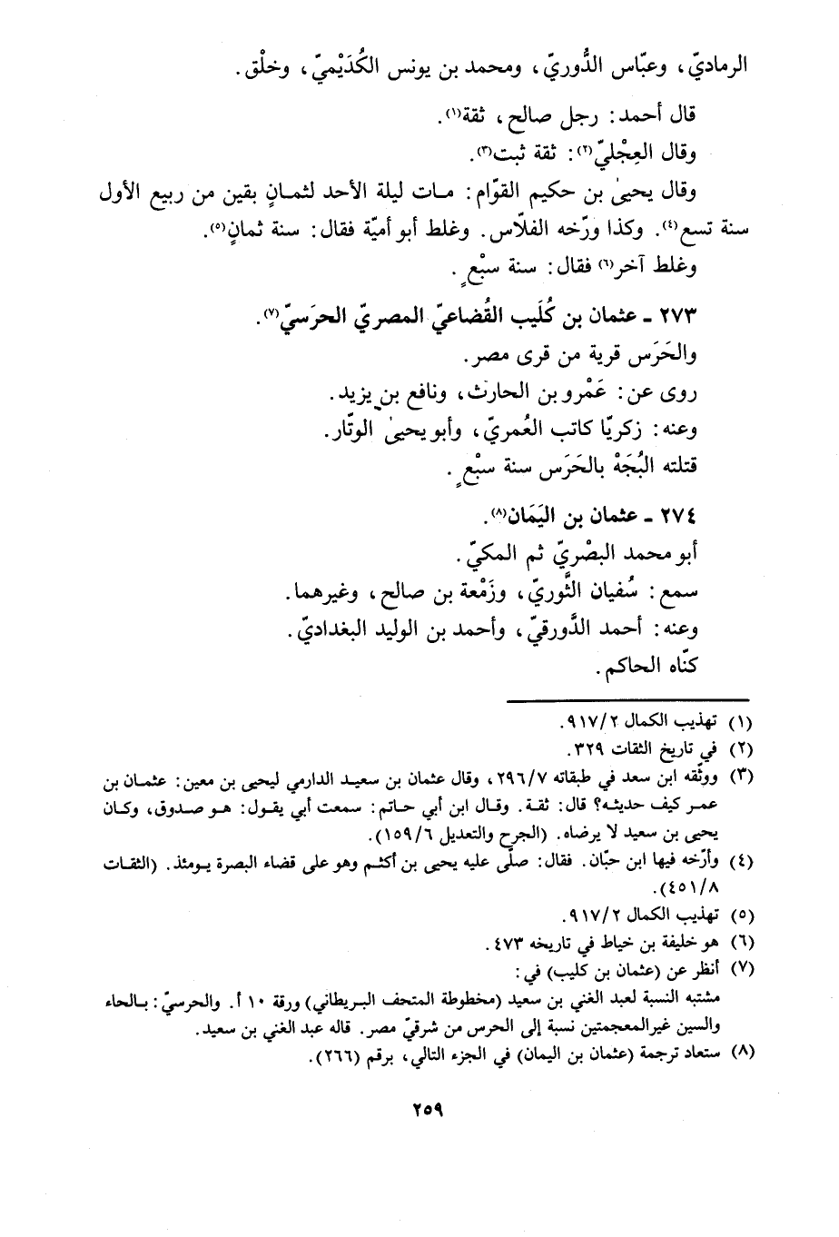 273- عثمان بْن كُلَيْب القُضاعيّ الْمَصْرِيّ الحرَسيّ [7] .