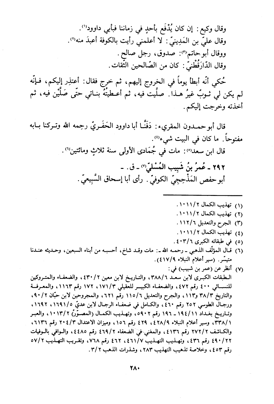 292- عمر بن شبيب المسليّ [7]- ق. - أبو حفص المذحجيّ الكوفيّ. رأى أبا إسحاق السّبيعيّ.