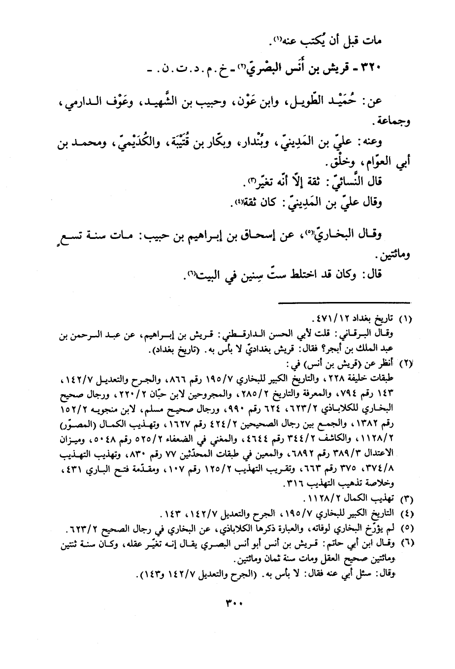 320- قُرَيش بْن أنس الْبَصْرِيّ [2]- خ. م. د. ت. ن. - عَنْ: حُمَيْد الطويل، وابن عَوْن، وحبيب بْن الشهيد، وعوف الدّارميّ، وجماعة.