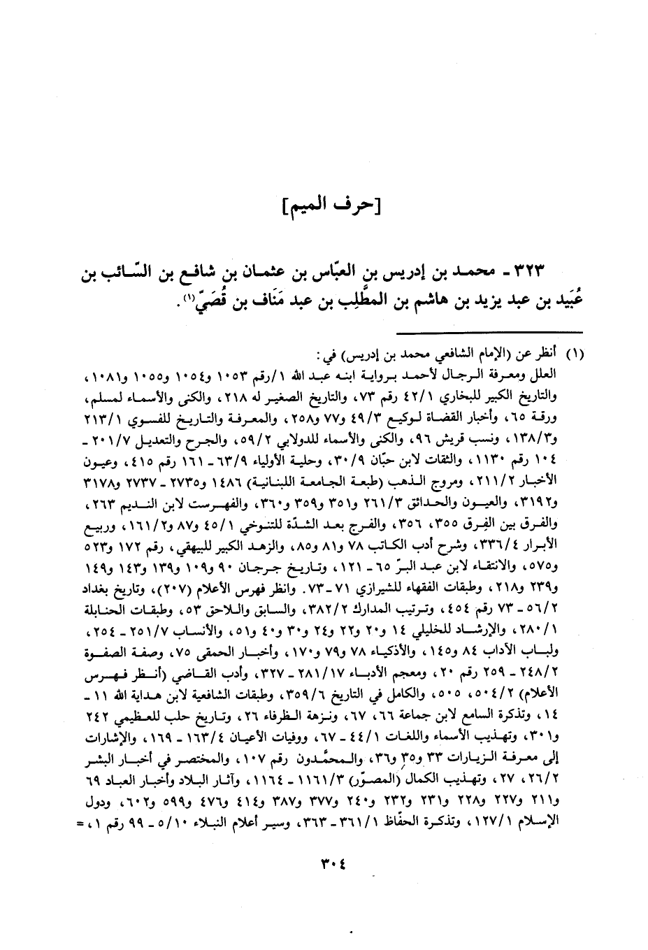 323- محمد بْن إدريس بْن العبّاس بن عثمان بن شافع بن السائب بن عبيد بْنِ عَبْدِ يَزِيدَ بْنِ هَاشِمِ بْنِ الْمُطَّلِبِ بْنِ عَبْدِ مَنَافَ بْنِ قُصَيٍّ [1] .