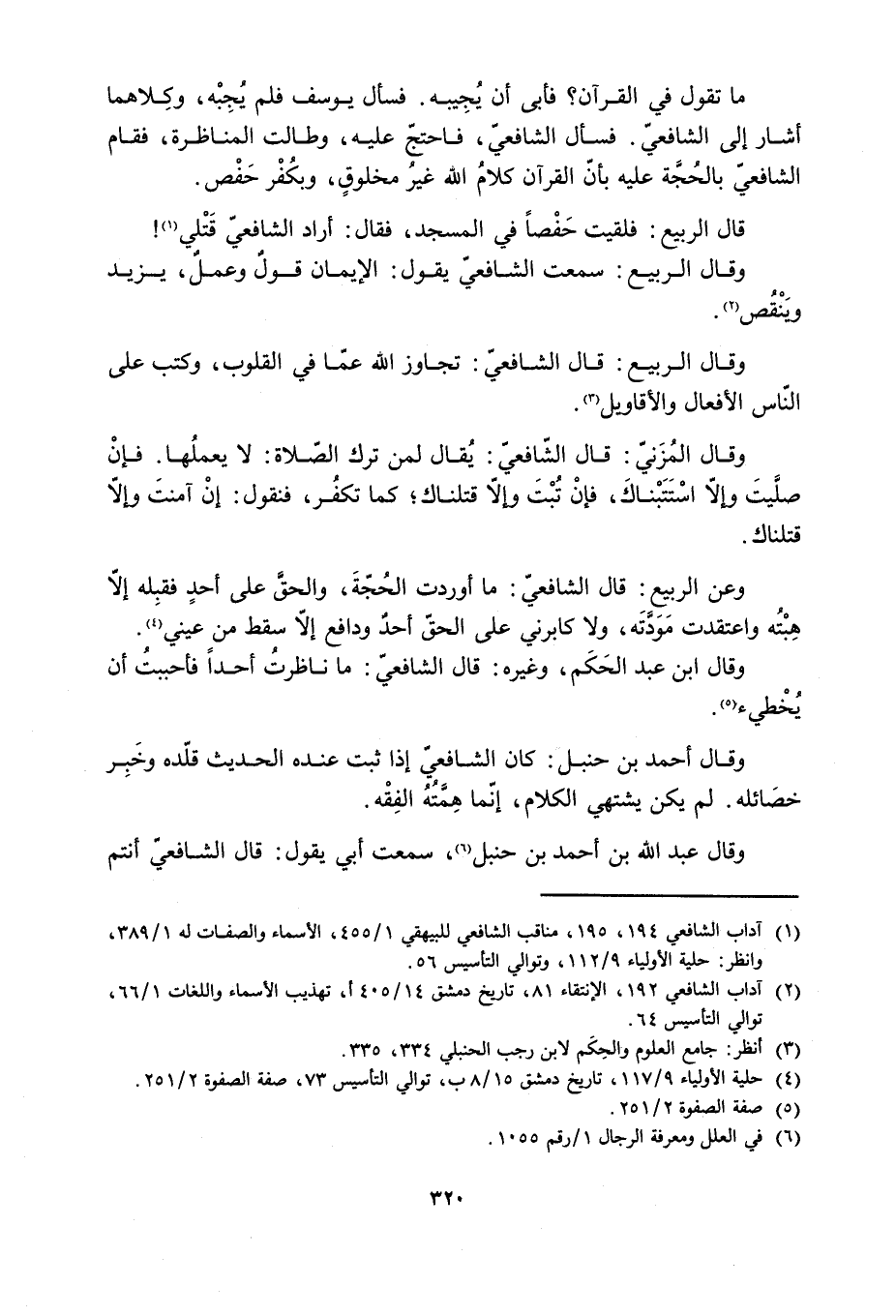 [1] آداب الشّافعيّ 194، 195، مناقب الشّافعيّ للبيهقي 1/ 455، الأسماء والصفات له 1/ 389، وانظر: حلية الأولياء 9/ 112، وتوالي التأسيس 56.