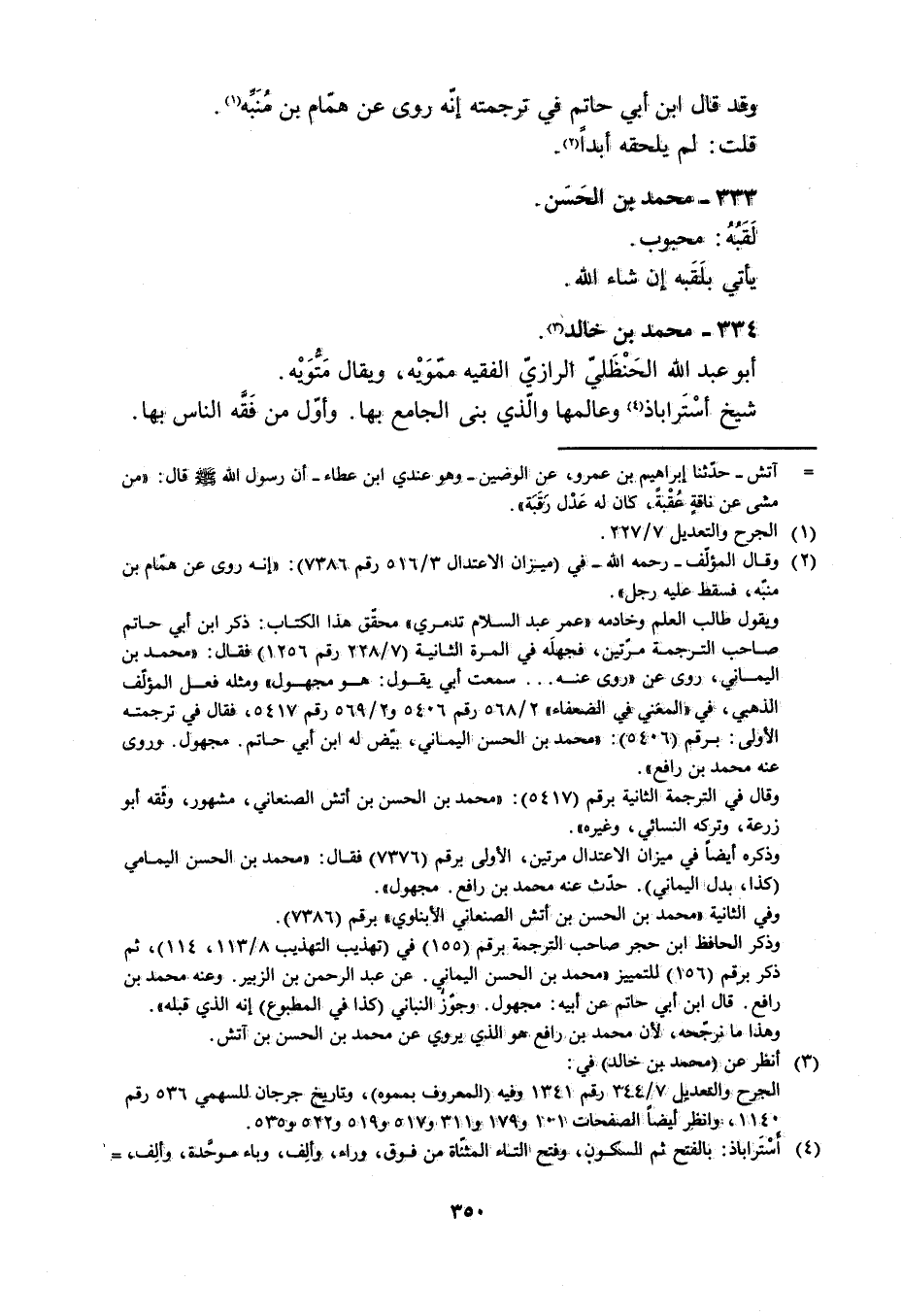 وقال في الترجمة الثانية برقم (5417) : «محمد بن الحسن بن أتش الصنعاني، مشهور، وثّقه أبو زرعة، وتركه النسائي، وغيره» .
