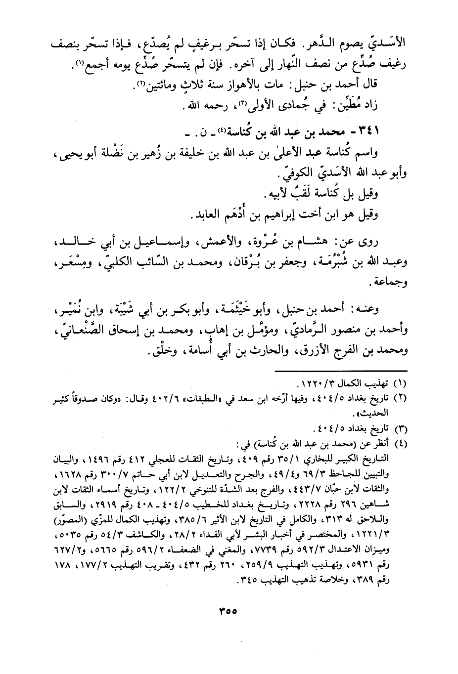 341- مُحَمَّد بْن عَبْد اللَّه بْن كُناسة [4]- ن. - واسم كُناسة عَبْد الأعلى بْن عَبْد اللَّه بْن خليفة بْن زُهَيْر بْن نَضْلة أبو يحيى، وأبو عَبْد اللَّه الأَسَديّ الكوفيّ.