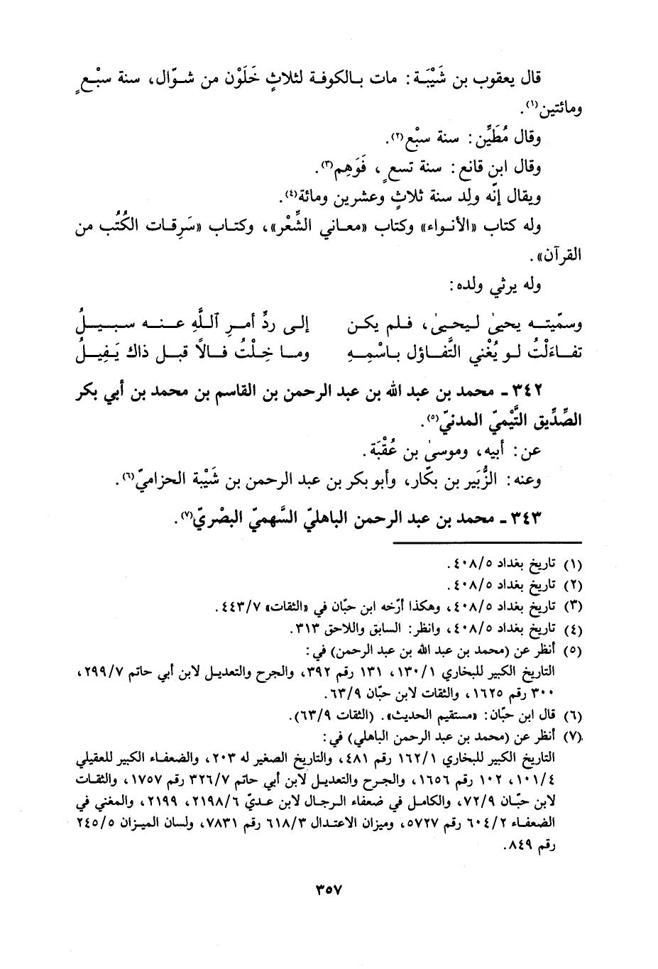 342- مُحَمَّدِ بْنِ عَبْدِ اللَّهِ بْنِ عَبْدِ الرَّحْمَنِ بْنُ الْقَاسِمِ بْنِ مُحَمَّدِ بْنِ أَبِي بَكْرٍ الصِّدّيق التَّيْميّ الْمَدَنِيّ [5] .
