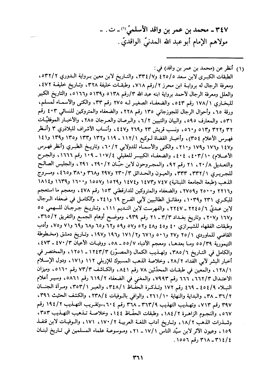 347- محمد بْن عُمَر بْن واقد الأسلميّ [1]- ت. - مولاهم الْإِمَام أبو عَبْد اللَّه الْمَدَنِيّ الواقديّ.